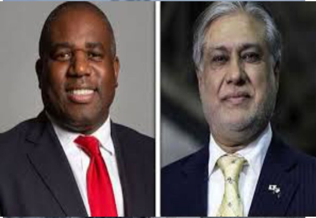 نائب وزیرِ اعظم اور وزیرِ خارجہ اسحاق ڈار سے برطانوی وزیرِ خارجہ ڈیوڈ لیمی نے ملاقات کی ہے۔