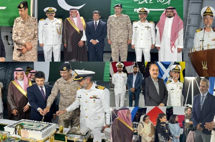 قونصل جنرل پاکستان سید مصطفیٰ ربانی اور پی این ایس خیبر کے کیپٹن علی رضا کی جانب سے جہاز کے عرشہ پر پاکستانی کمیونٹی کے اعزاز میں استقبالیہ ڈنر*